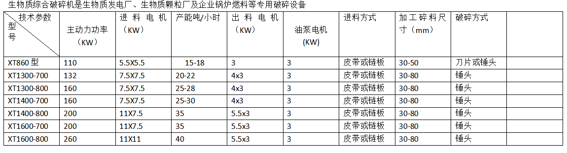 主要用途:生物質(zhì)發(fā)電廠專用設(shè)備,用于建筑廢舊模板,樹枝木材,各種農(nóng)作物秸稈的破碎。